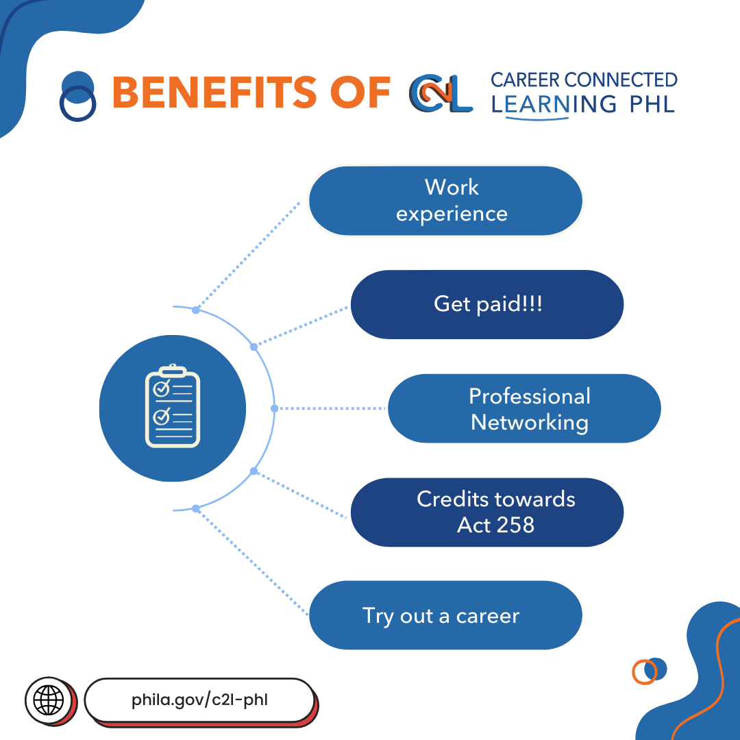 C2L-PHL is Philadelphia’s version of Career Connected Learning. This proven model helps youth develop the knowledge, skills, and mindset they need to enter the workforce, careers, and community life. Our citywide collaboration focuses on three goals for youth: